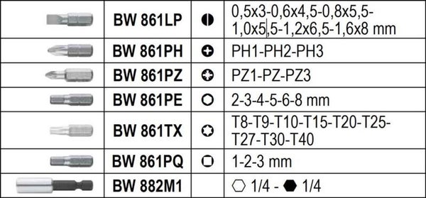 30-delig bitset met magnetische bithouder, in kunststof box.