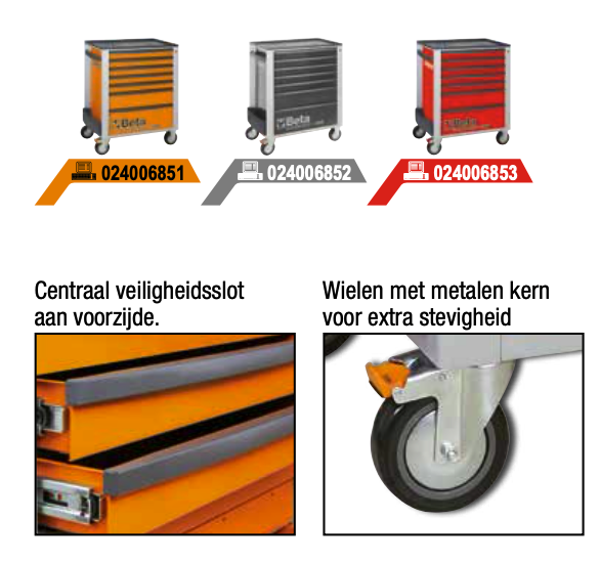 Gereedschapswagen met 7 laden en 262-delig assortiment automotive gereedschappen