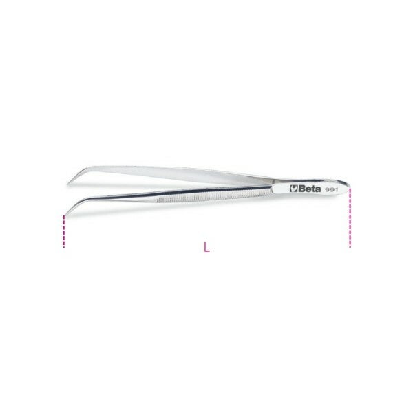 Pincet met gebogen smalle gegroefde bekken vervaardigd uit roestvast staal gepolijste uitvoering