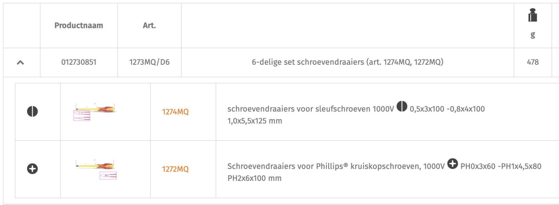 1273MQ/D6 6-delige set van geïsoleerde schroevendraaiers