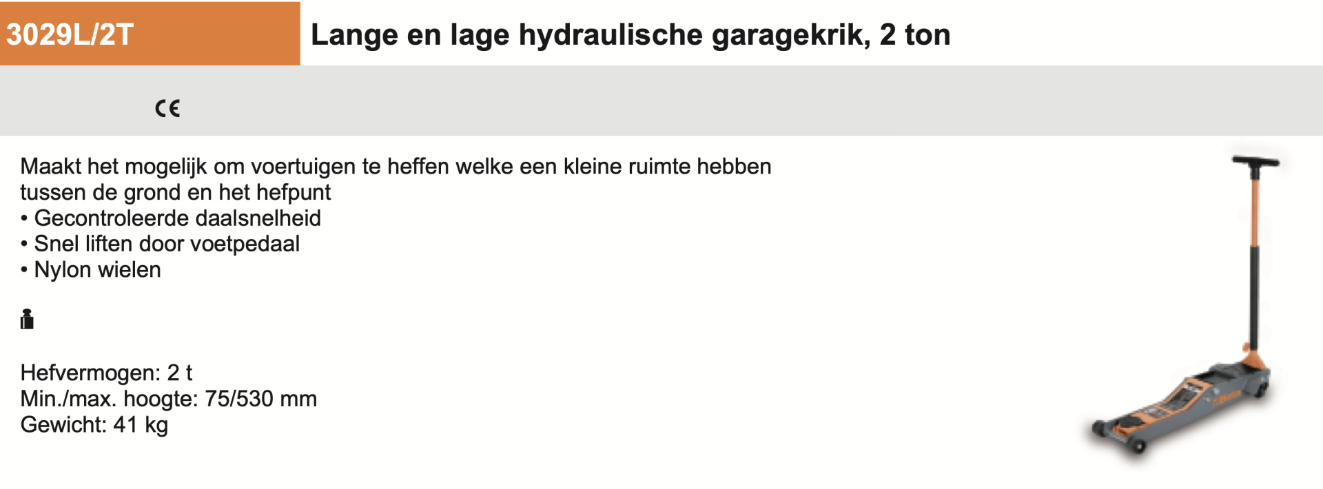 3029L/2T Lange en lage hydraulische garagekrik, 2 ton