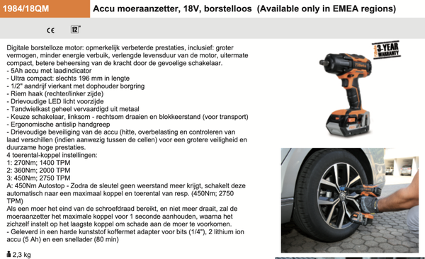 1984/18QM Accu moeraanzetter, 18V, borstelloos