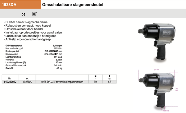 1928DA Omschakelbare slagmoersleutel