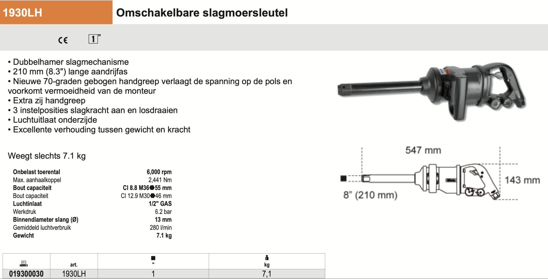 1930LH Omschakelbare slagmoersleutel