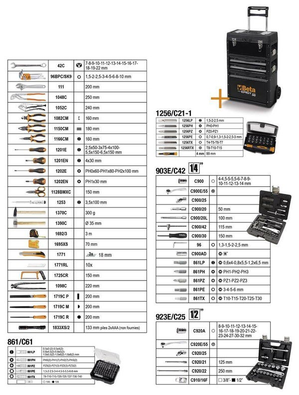 Trolley (type C43), inclusief 212-delig assortiment gereedschappen. Voor algemeen onderhoud